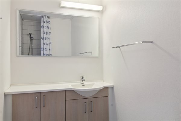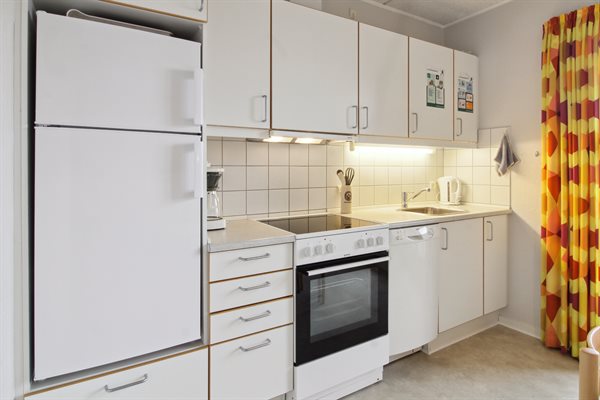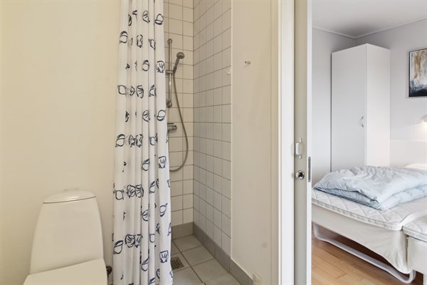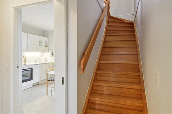 Indvendig er der klinkegulv i bad, ellers trægulve. Stueetagen er indrettet med et skønt badeværelse med bruser, et dejligt køkken, som bl.a. er udstyret med opvaskemaskine og mikrobølgeovn samt 1 soveværelse med dobbeltseng. På første sal findes endnu et badeværelse med bruser, en opholdsstue som indeholder stereoanlæg med CD-afspiller, DVD-afspiller, TV tilsluttet fællesantenne samt dobbelt sovesofa og endnu 1 soveværelse med dobbeltseng. Gratis, trådløs internetforbindelse (egen computer skal medbringes). Der er installeret energivenlig luft til luft varmepumpe.