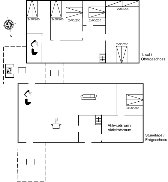 Sommerhuset er rummeligt og der er god plads. Husets naturlige samlingspunkt er aktivitetsrummet, som er indrettet med billard og storskærms-TV, og som ligger i forlængelse af det store, lyse køkken/alrum.