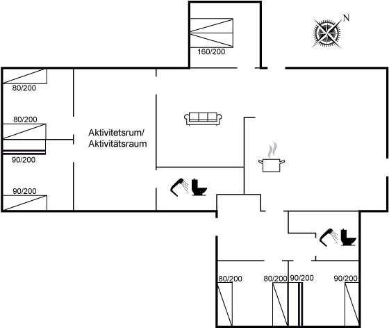 Dette fantastiske, nyopførte aktivitetshus med plads til 12 personer ligger i flot natur - tæt på den børnevenlige badestrand ved Bratten. Til huset hører dejlige terrasser og en stor svømmespa. Der er desuden anlagt en boldbane.
