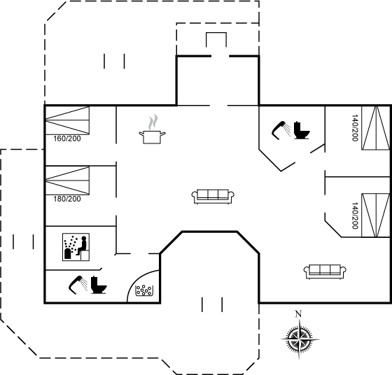 Husets indretning gør det velegnet til såvel 1 som 2 familier, men også til flere par, som ønsker at tilbringe en fælles ferie i dejlige omgivelser.