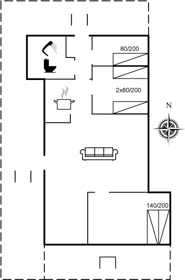 | 300 til vand | 6 pers. | 65 m2 | 3 soverum |
