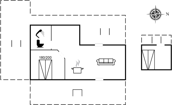 Sommerhuset fremstår lyst og moderne og passer rigtig godt til f.eks. en familie med større børn eller to par, da her findes et meget fint anneks, hvor to af sovepladserne befinder sig. Her er nogle fantastiske terrassearealer, som også delvist er overdækket. Terrassen går rundt om hele sommerhuset, så her er altid mulighed for at finde en lækrog eller nyde solen.