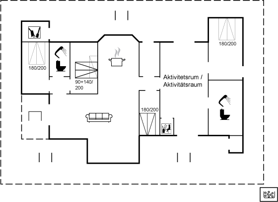 Slap af i den udendørs spa eller husets sauna, mens de, der ønsker lidt mere fart over feltet, kan hygge sig i aktivitetsrummet.