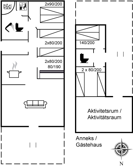 Et dejligt sommerhus med en stor lukket grund, hvor både voksne, børn og hunden kan boltre sig. Hvis I får problemer med at få børnene ind, skyldes det nok det store og fine legehus, som har både varme og lys. Der findes desuden et stort anneks med 4 sovepladser fordelt på 2 værelser samt 1 gæstetoilet. I annekset er der også et stort aktivitetsrum med forskellige spil samt motionsredskaber.