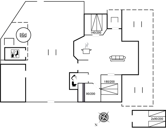 I solgården mellem huset og aktivitetsrummet er der saunatønde og et stort lækkert vildmarksbad til 6 personer. Disse dejlige udendørsfaciliteter indbyder til mange timers afslapning og velvære på allle årstider. Prøv at sidde en vinteraften under åben himmel i det lune vand og nyd lidt koldt at drikke.