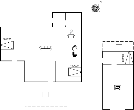 I kan nyde timer i det fri såvel på den åbne som på den overdækkede terrasse, hvor der er mulighed for at finde læ og nyde dagens måltider tilberedt på grillen. Her er der plads til hygge, afslapning og samvær – uanset vejret.
