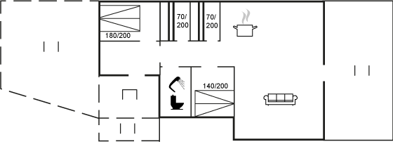 Dette skønne sommerhus danner de perfekte rammer for en afslappende ferie i rolige omgivelser. Her er der plads til 6 personer, og den indhegnede have gør, at mindre børn kat lege frit og trygt.