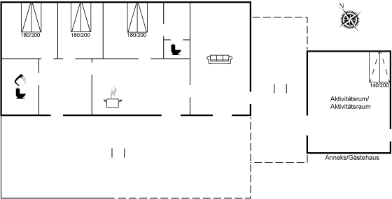Huset byder på et hyggeligt aktivitetsrum med dart, Airhockey, bordfodbold og et kreativt kreabord – perfekt til både børn og voksne.