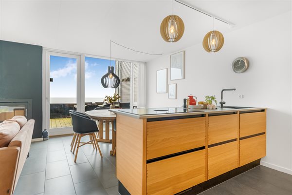 Her kan I nyde både en overdækket og en åben terrasse, hvor I kan følge solens gang hele dagen. Terrasserne indbyder til afslapning, hyggelige måltider og lange grillaftener med lyden af bølger i baggrunden.