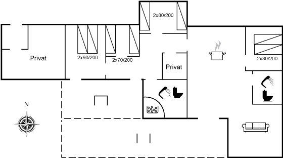 Sommerhuset byder på både indendørs spa og udendørs vildmarkskar, så velvære er i fokus året rundt. De overdækkede og åbne terrasser giver mulighed for at nyde udelivet i al slags vejr, og grillen indbyder til hyggelige grillaftener.