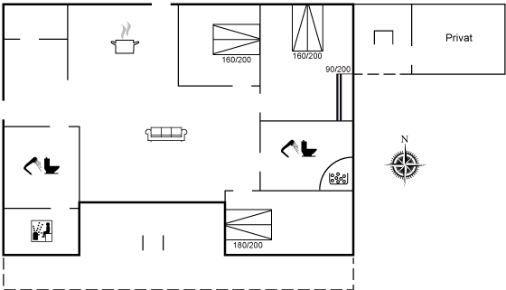 Til huset hører et aktivitetsrum med Smart-TV og soundboks, og hvor man kan dyste i bl.a. bordtennis og dart. Når lysten til diverse spil har lagt sig, kan man nyde en afslappende stund i husets vildmarkskar.