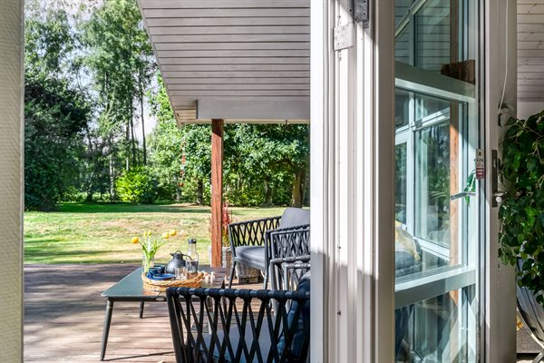 Huset ligger på en stor grund med gynge, bålplads og rigeligt med plads til leg og boldspil. De mange terrasser gør det muligt at følge solen hele dagen – og om aftenen kan I samle jer til hyggelige grillaftener i fredelige omgivelser.