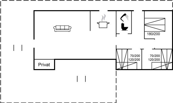 Bemærk: i de 2 værelser med køjesenge er den øverste soveplads en enkeltseng, mens den nederste seng er 120 cm bred.