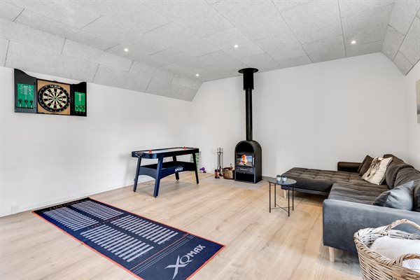 Husets fælles rum ”salen” indbyder til hygge. Her er noget for enhver smag; både brætspil, dart, air hockey eller du kan bare slappe af med en god bog i sofaen foran brændeovnen.