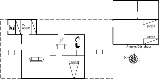 | 200 til vand | 6 pers. | 83 m2 | 3 soverum |