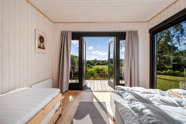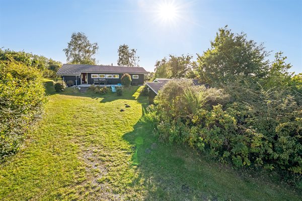 Sommerhuset ligger ganske ugenert på en stor og skøn naturgrund, hvorfra udsigten udover landskabet er helt fantastisk. På flere side af huset er der nogle utrolig gode terrassearealer - således der altid er mulighed for at nyde solen og finde et hjørne i læ, hvis vejret ikke helt skulle arte sig. Den ene af terrasserne er endda overdækket.