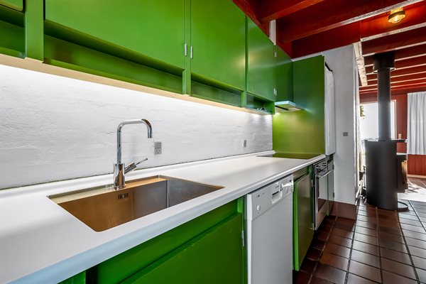 Ferieboligen har vaskemaskine. Køkkenet er udstyret med et køleskab med frysekapacitet på 30 liter. Der er 4 induktionskogeplader, varmluftovn, mikrobølgeovn samt opvaskemaskine.