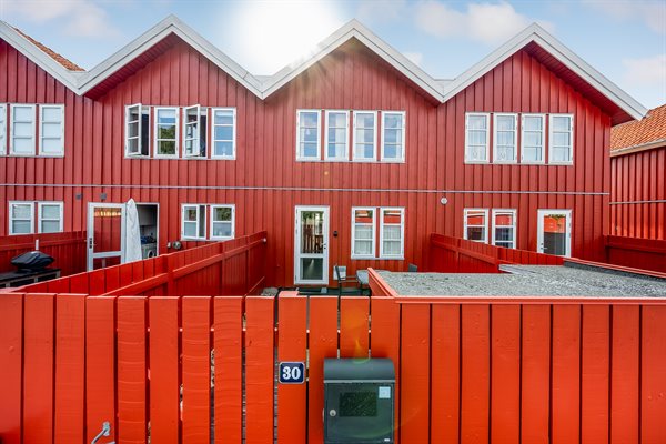 Det karakteristiske røde Skudehavnshus er beliggende midt på lystbådehavnen i Ebeltoft og egner sig til 4 personer. Boligen er på 76 m² fordelt på 2 plan, og er bygget i 1978. I 2019 gennemgik boligen en renovering. Der findes parkering ved ferieboligen.