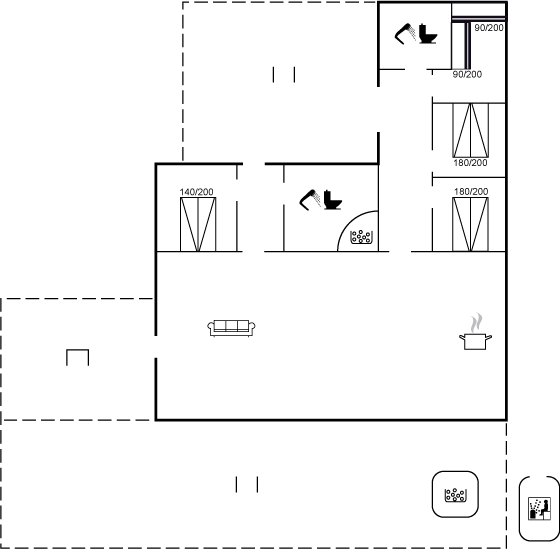 Huset står skarpt på grunden med sort facade og en stor sydvendt terrasse. Her findes der spa, sauna, overdækket lounge og flere små kroge fordelt rundt om huset. Alt er gennemført. Det er tilladt at medbringe familiens firbenede ven, og der er god plads udenfor.