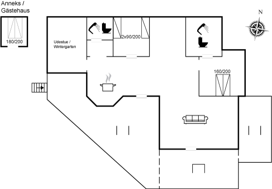 Huset fra 2008 fremstår flot og velholdt, med nyere køkken i åben forbindelse til spiseafd. og stuen. Huset har 3 soverum, fordelt på to værelser og et anneks. Der er carport til bilen og udestue til de sene aftener.