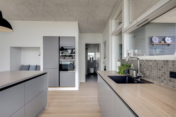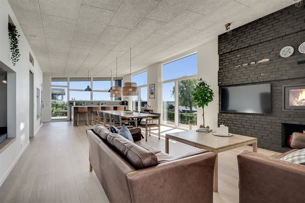 Sommerhuset er bygget i flotte og eksklusive materialer og virkelig dejligt, at holde ferie i. Husets hjerte er det store og flotte, integrerede køkken-alrum og stue, hvorfra den flotte udsigt over vandet kan nydes. Huset er rigtig godt indrettet og passer perfekt til f.eks. en familie med 2-3 børn, 2-3 par eller 2 familier, som ønsker at holde en fælles ferie i dette fantastiske sommerhus.