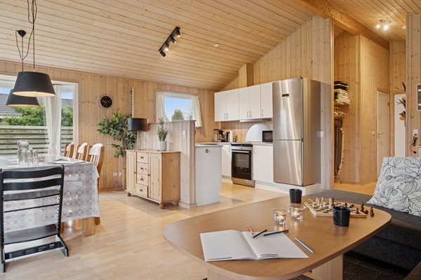 Husets hjerte er køkken-alrummet, som ligger i åben forbindelse med stuen – her er det oplagt at samle hele familien, når der skal tilberedes lækre måltider eller hvis vejret skulle svigte. Huset er rigtig godt indrettet og passer perfekt til f.eks. en familie med 2-3 børn eller 2 par, som ønsker at holde ferie i disse naturskønne omgivelser.