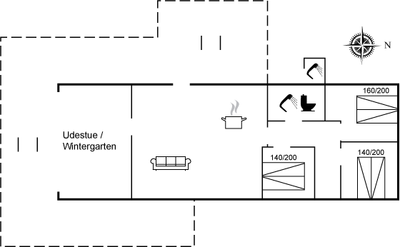 Indendørs finder I moderne bekvemmeligheder som Chromecast, der gør det let at streame jeres yndlingsindhold, mens I også har adgang til både danske og tyske tv-kanaler. Udenfor er der flere terrasser, så I kan vælge præcis det sted, hvor solen eller skyggen passer jer bedst. Lige foran udestuen står et indbydende loungesæt, hvor I kan nyde en kop kaffe eller et glas vin med udsigt til vandet.