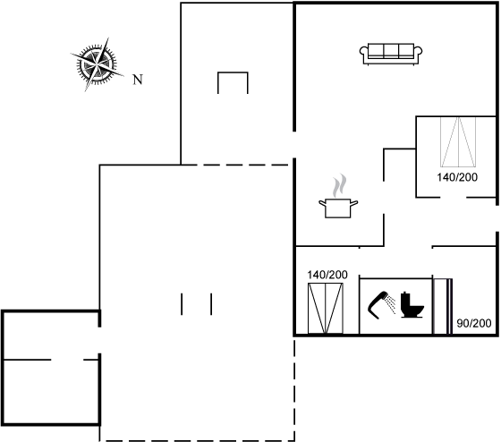 I haven finder I et stort, åbent terrasseområde med flere havemøbler samt et lækkert vildmarkskaret. Fyld det blot med vand, tænd op i brændkammeret, og efter et par timer kan I synke ned i det varme vand og nyde den ultimative afslapning. Vi kan især anbefale en tur i vildmarkskaret på en mørk aften, hvor I kan sidde under den klare stjernehimmel – en oplevelse, I sent vil glemme.