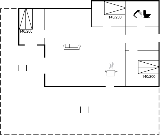 Sommerhuset har tre separate soveværelser med komfortable dobbeltsenge, ideelt til hele familien eller flere par. Badeværelset byder på ekstra forkælelse med et badekar, hvor I kan nyde ro og velvære efter en oplevelsesrig dag.