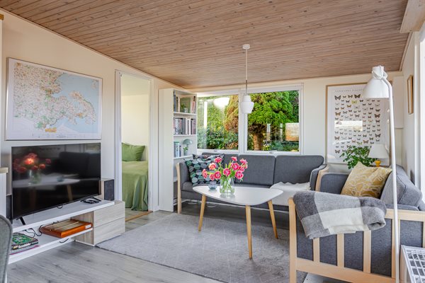 Dette smukt beliggende sommerhus ligger højt i det populære område og byder på en dejlig udsigt – både indefra huset og fra den store terrasse, hvor I kan nyde solens stråler og den beroligende udsigt over vandet.
