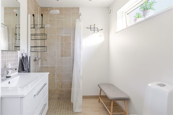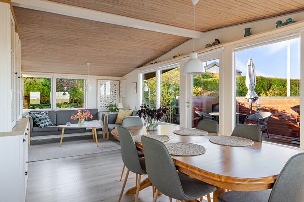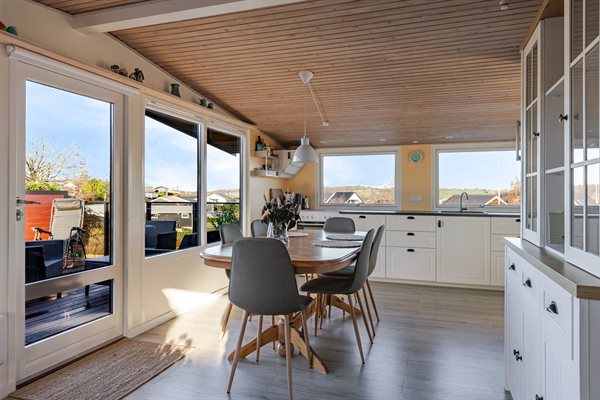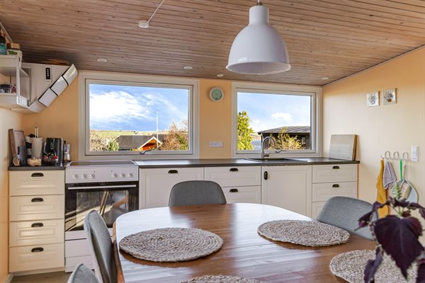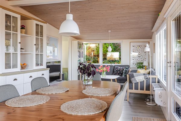 Husets hjerte er det lyse og indbydende køkken-alrum, som oser af hygge og klassisk sommerhusstemning. Her kan I samle familien til friskbagte boller om morgenen eller hyggelige spil ved spisebordet om aftenen.