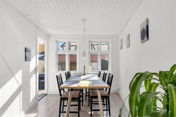 Huset er i to plan og har i stueplan stue, spisestue og køkken. På 1. salen er husets to soveværelser og badeværelset. I den meget hyggelige gårdhave er der desuden anneks med soveværelse.