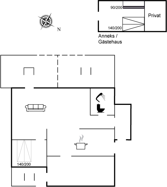 Til huset hører et nyt, stort anneks, som er opført for nyligt, og som er indrettet med 4 af de i alt 6 sovepladser.