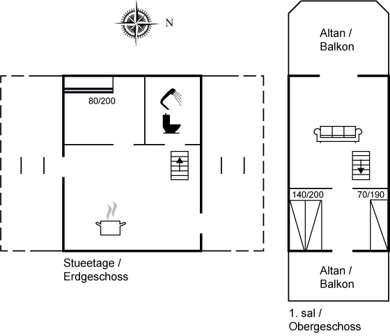 Huset er hyggeligt indrettet og har, ud over altanen, flere gode terrasser, hvoraf den ene er sydvendt, så der kan næsten altid findes læ - selv på blæsende dage. Der findes et dejligt område omkring huset, hvor der er plads til udendørs aktiviteter.