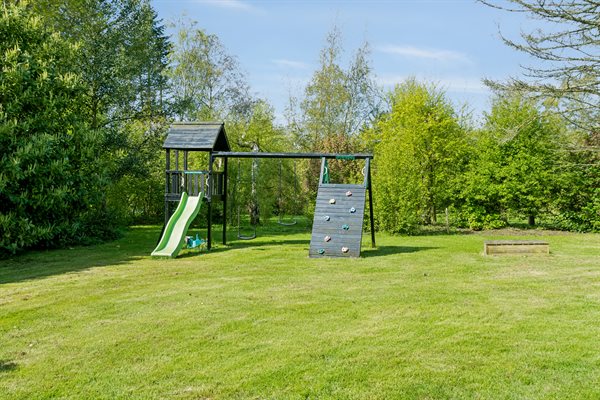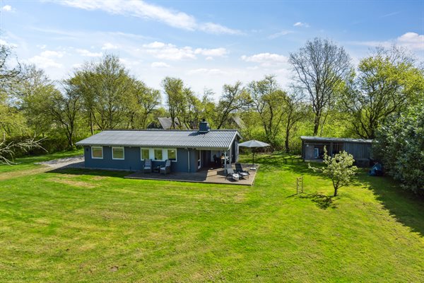 Til huset hører et dejligt sydvendt terrasseområde, hvoraf en del er overdækket samt en stor grund med god plads til udendørsaktiviteter.