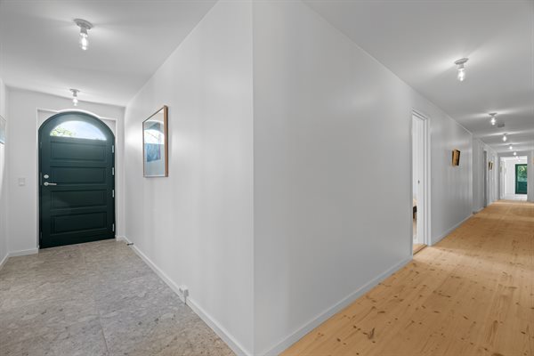 Fra huset er der kort gåafstand til stranden via godsets private vej, som går helt ned til vandet.