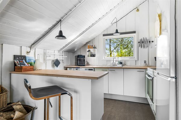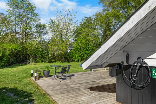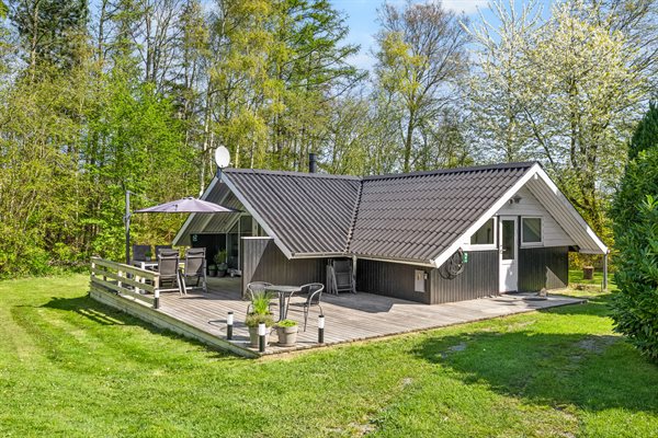 Huset er hyggeligt og charmerende indrettet og har den helt rigtige sommerhusstemning. Foran huset finder du en skøn, delvist overdækket og sydvest-vendt terrasse, som ligger ganske ugenert, da huset befinder sig for enden af et vænge.