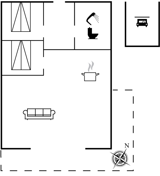 Sommerhuset er lyst og venligt indrettet med to gode soveværelser, badeværelse samt åbent køkken i forbindelse med spise- og opholdsstuen. I stuen finder man en hyggelig alkove, som børnene vil elske at overnatte i. Her er der også udgang til en dejlig træterrasse med komfortable havemøbler og grill.