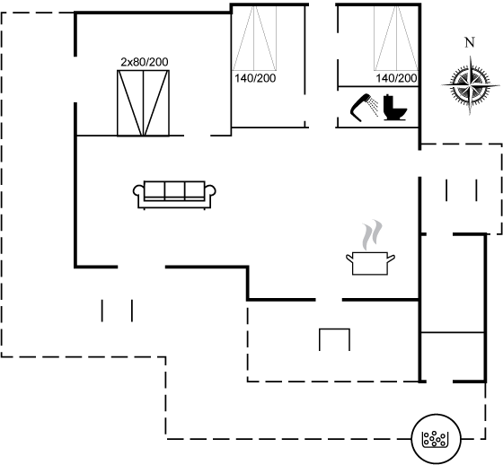 Bemærk: Vildmarksbadet er kun til privat brug og indgår ikke i udlejningen.