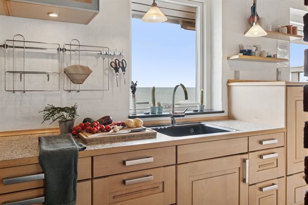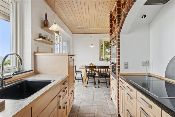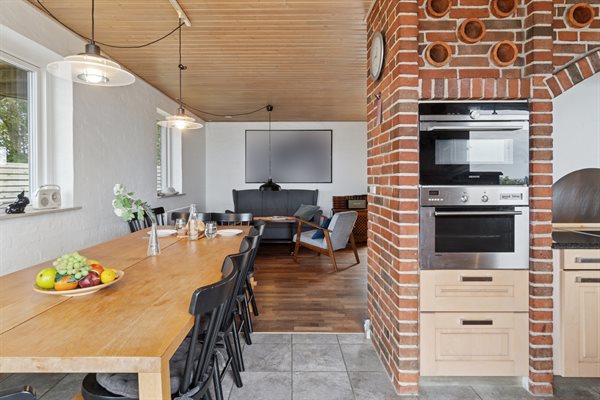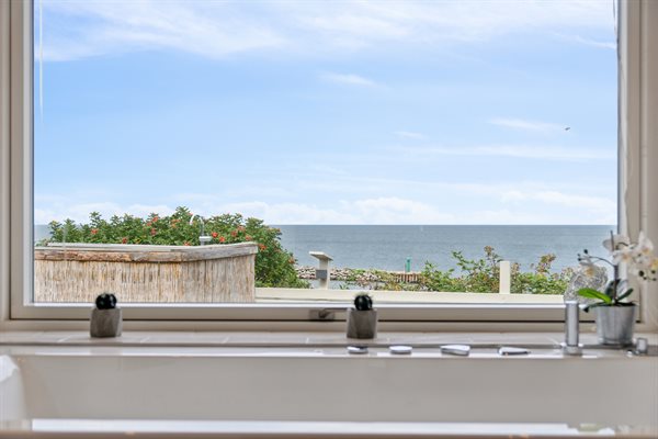 Huset er stort og rummeligt med plads til hygge og samvær i selskab med familie og venner. I forbindelse med det dejlige køkkenalrum er et afslappende hjørne med sofa og lænestole. Der er udgang til terrasser på begge sider af huset. På den nordvendte terrasse åbner udsigten sig op, og her er både udendørs spa og udekøkken.