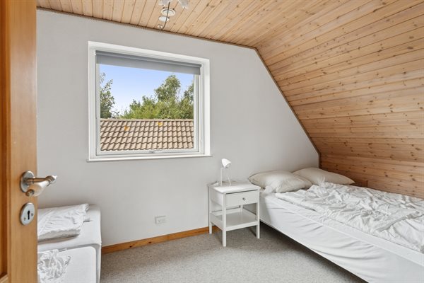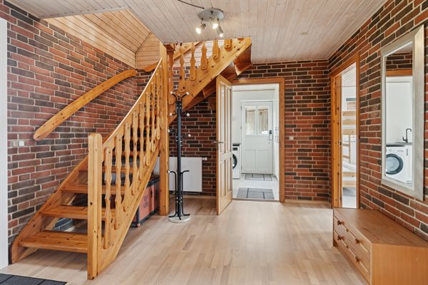 I stueplan er der 1 soveværelse med dobbeltseng og køjeseng. Der er badeværelse med gulvvarme, bruseniche og spa/badekar. Der er desuden et praktisk bryggers med vaskemaskine og tørretumbler.