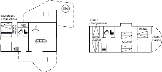 På 1. salen er der fra stuen fuld panoramaudsigt over havet og havnen. Der er 2 soveværelser, hvor der i det ene er 2 dobbeltsenge og i det andet er 1 dobbeltseng. I stuen er der 2 sovesofaer med i alt 4 sovepladser. Der er badeværelse med bruseniche og gulvvarme.