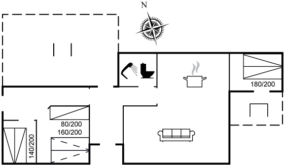 Der er 2 soveværelser med dobbeltsenge, hvor der fra det største soveværelse er udgang til en hyggelig terrasse, hvor morgensolen kan nydes. I det tredje soveværelse er 3 sovepladser.