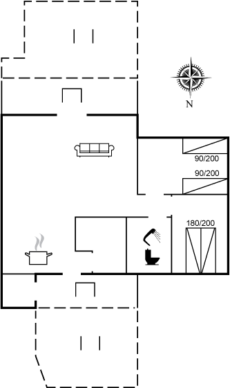 Der er 2 soveværelser med hver 2 sovepladser. Badeværelset er med bruseniche.