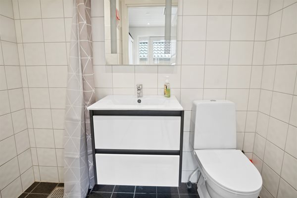 Huset indeholder 4 soveværelser. Der er 2 badeværelser med bruseniche og gulvvarme og der er tillige vaskemaskine og tørretumbler.