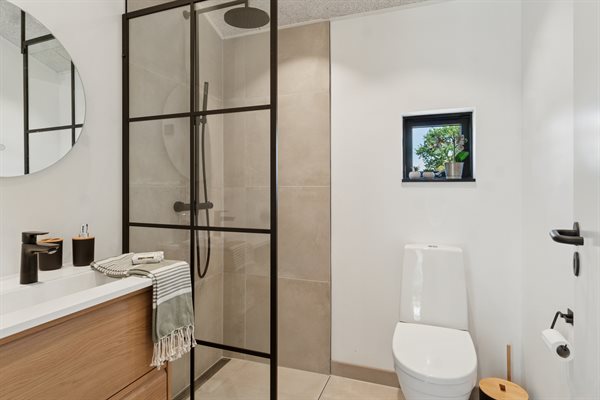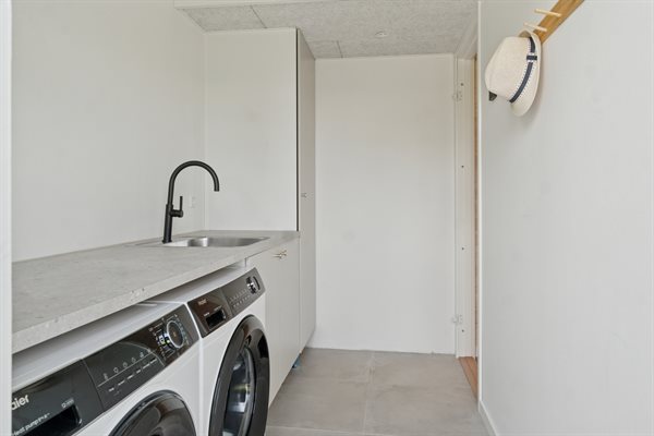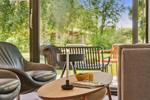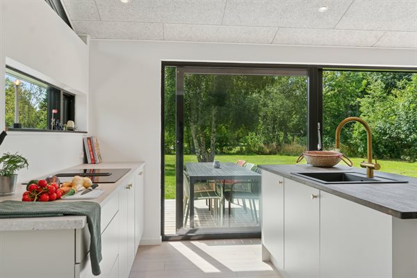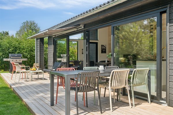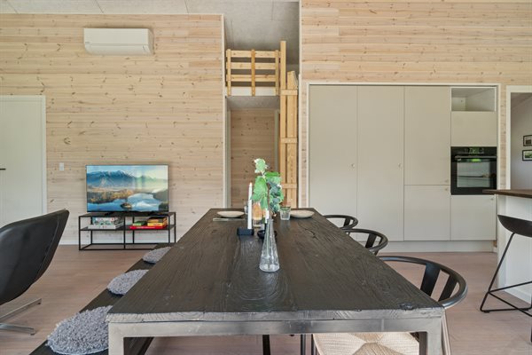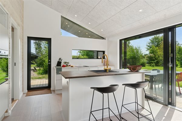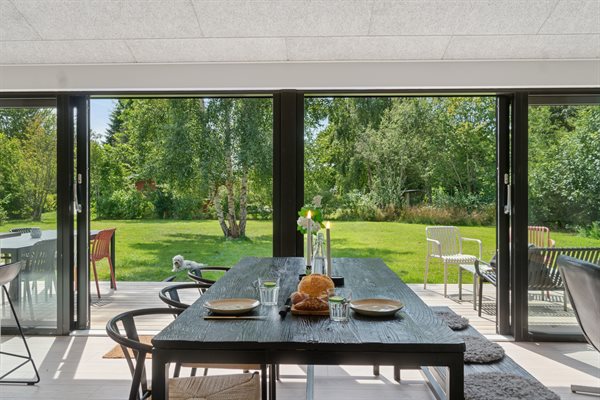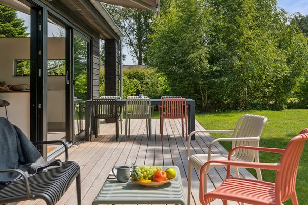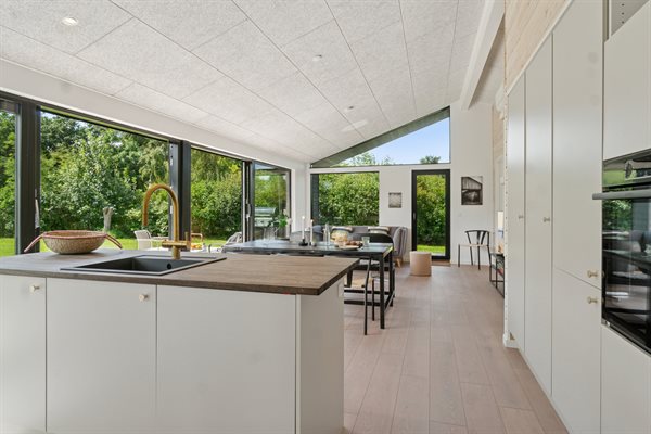 I det store lyse fællesrum med køkken, spiseplads og stue ud i ét og på det store terrasseområde er der rig mulighed for hygge og samvær med venner og familie. I hver ende af huset er et dejligt overdækket terrasseområde med mulighed for at finde skygge og læ og, hvor de lange sommeraftener kan nydes.