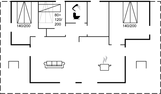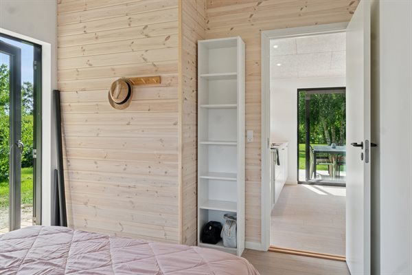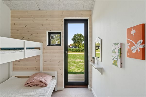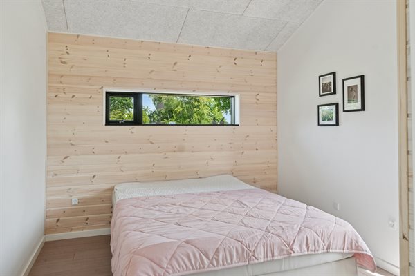 Der er i alt 3 soveværelser og en hems. I de 2 af soveværelserne er der dobbeltsenge. I det tredje soveværelse er en køjeseng, hvor den øverste køje er 80 cm. bred og den nederste 120 cm. Der er desuden 2 madrasser på hemsen. I det praktiske bryggers er der vaskemaskine og tørretumbler samt gulvvarme.