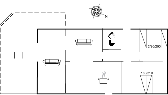 Der er 2 store soveværelser med hver 2 sovepladser. Det flotte badeværelse er med bruseniche og gulvvarme. Der er desuden udebruser (tilgængelig fra uge 15 t.o.m. 44).