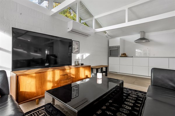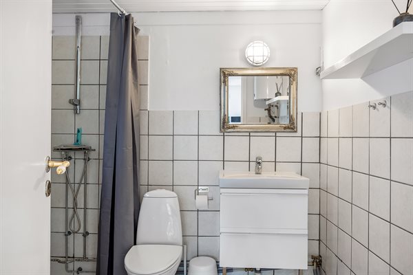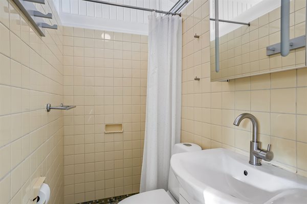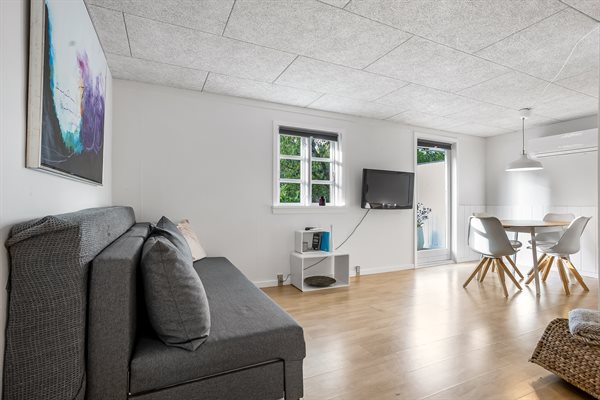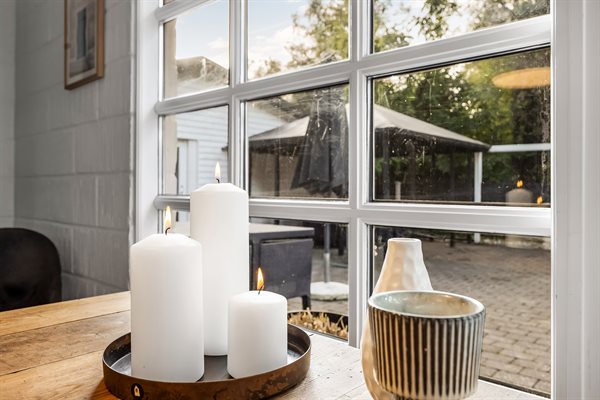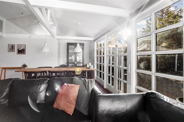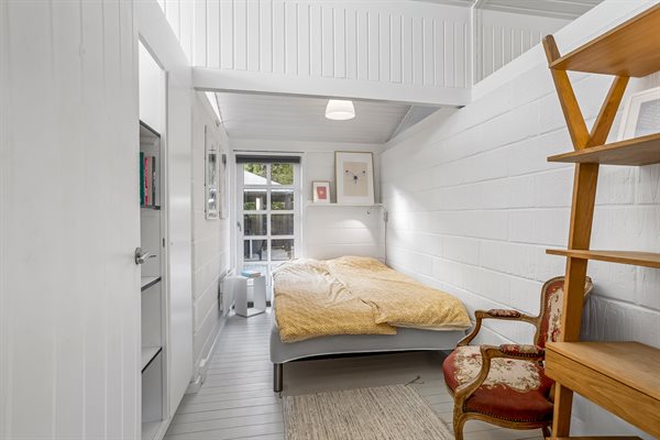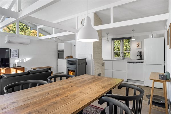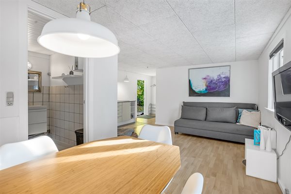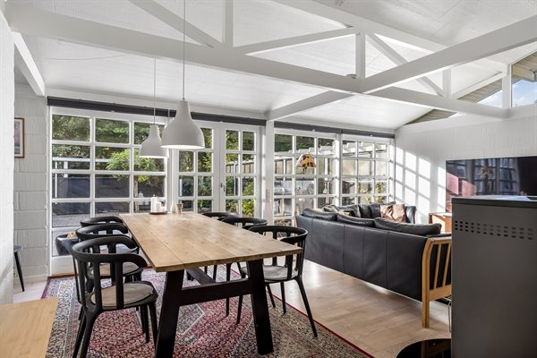 Huset har et boligareal på 124 m2 med tilhørende anneks og aktivitetsrum. Selveste huset er indrettet med et dejligt køkken i et åbent miljø sammen med spiseafdeling og stue. Herfra er der direkte adgang til gårdhaven og solterrassen. Desuden findes der entre, badeværelse og to soveværelser, begge med dobbeltseng.
