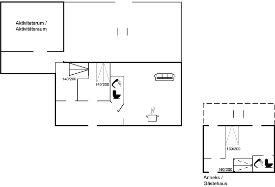 I forbindelse med hovedhuset og gårdhaven findes der er stort aktivitetsrum, hvor man kan hygge med bl.a. dart og billard.